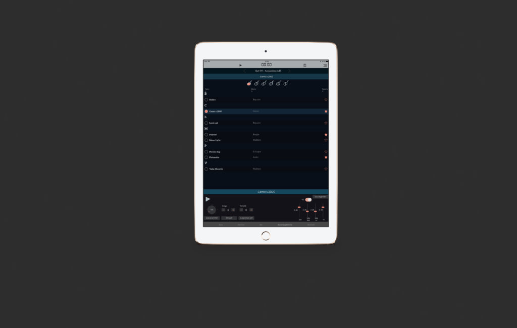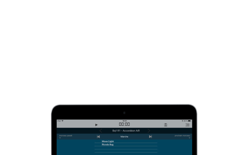 Ce n’est pas tout… Vous pouvez associer une partition, des paroles, ou n’importe quel document PDF à un MP3. Ainsi, au démarrage du MP3, notre application vous affichera automatiquement à l’écran votre partition.