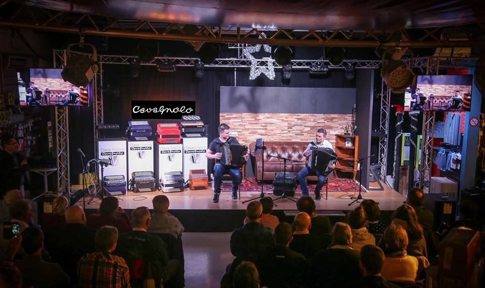 Pour les démonstrations extérieures, nous nous déplaçons régulièrement avec un démonstrateur acoustique bien connu dans le monde de l’accordéon (par exemple Eric Bouvelle, Aurélien Noël, Jean-Michel Sonnerat, Stéphane Courtot-Renoux…) ainsi qu’avec Matthieu Chaussalet qui assure la partie numérique.